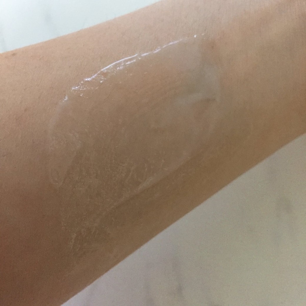 気になる使用感ですが、ジェルが濃厚に見えるためベタベタするのかと思っていたのですが、お顔にスリスリしたあと2,3分程放置するとすーっとお肌に浸透されていきます。