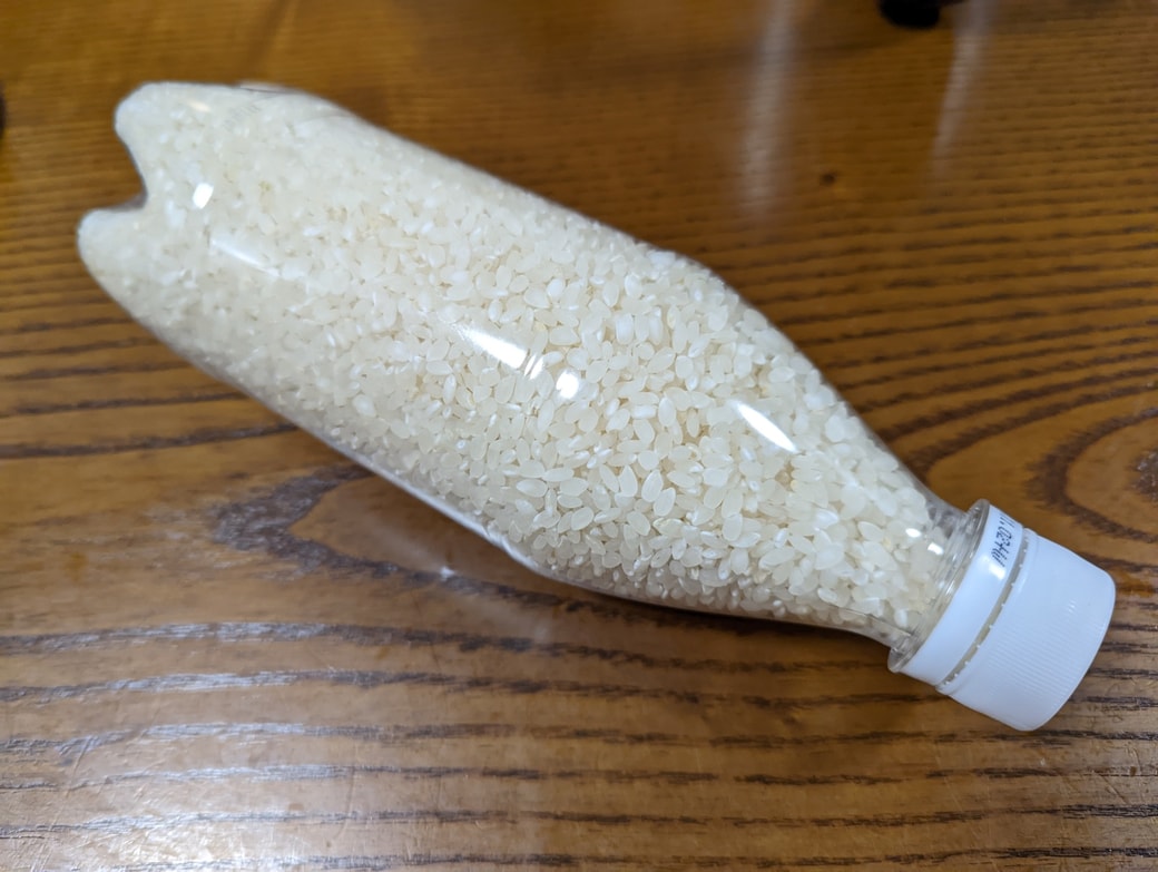 ペットボトルの蓋をしっかり締めれば、空気をシャットダウンすることができるので、お米の酸化も防ぐことができます。また湿気ることもありませんよ。