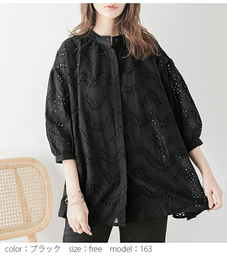 春らしく華やかな印象を叶える万能ブラウス。程よい透け感のアイレット刺繍が、着るだけで品よくこなれた雰囲気に。バンドカラーとパフスリーブが全体をすっきり見せ、40代に嬉しい上品なバランスを演出します。軽やかで肌なじみの良い綿混素材は、長時間の着用も快適。ボタンを開けて羽織りとしても使えるから、着回し力も抜群です。