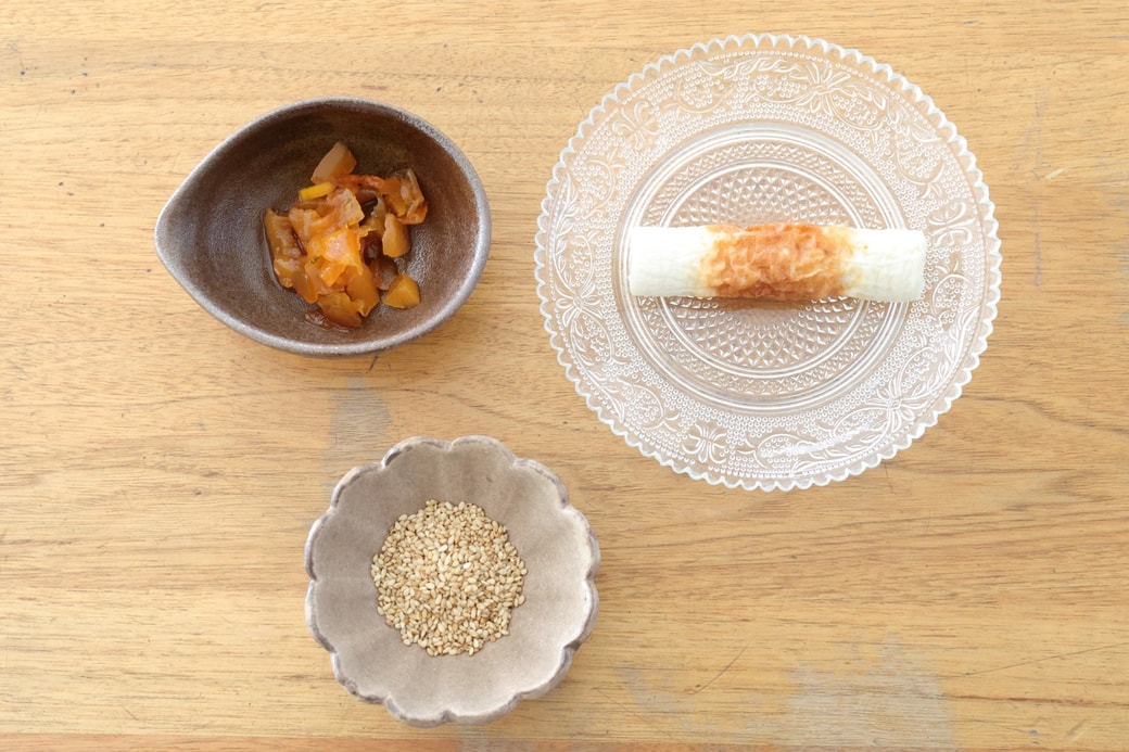 1.ごはんに、ちくわ、福神漬け、白ごまを混ぜ合わせます。