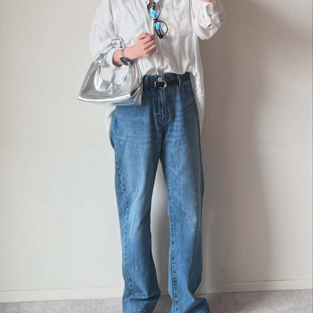 仕上げに今季トレンドのシルバーのバッグを投入すれば、さりげなく旬を取り入れた、頑張りすぎない春の大人カジュアルが完成します。