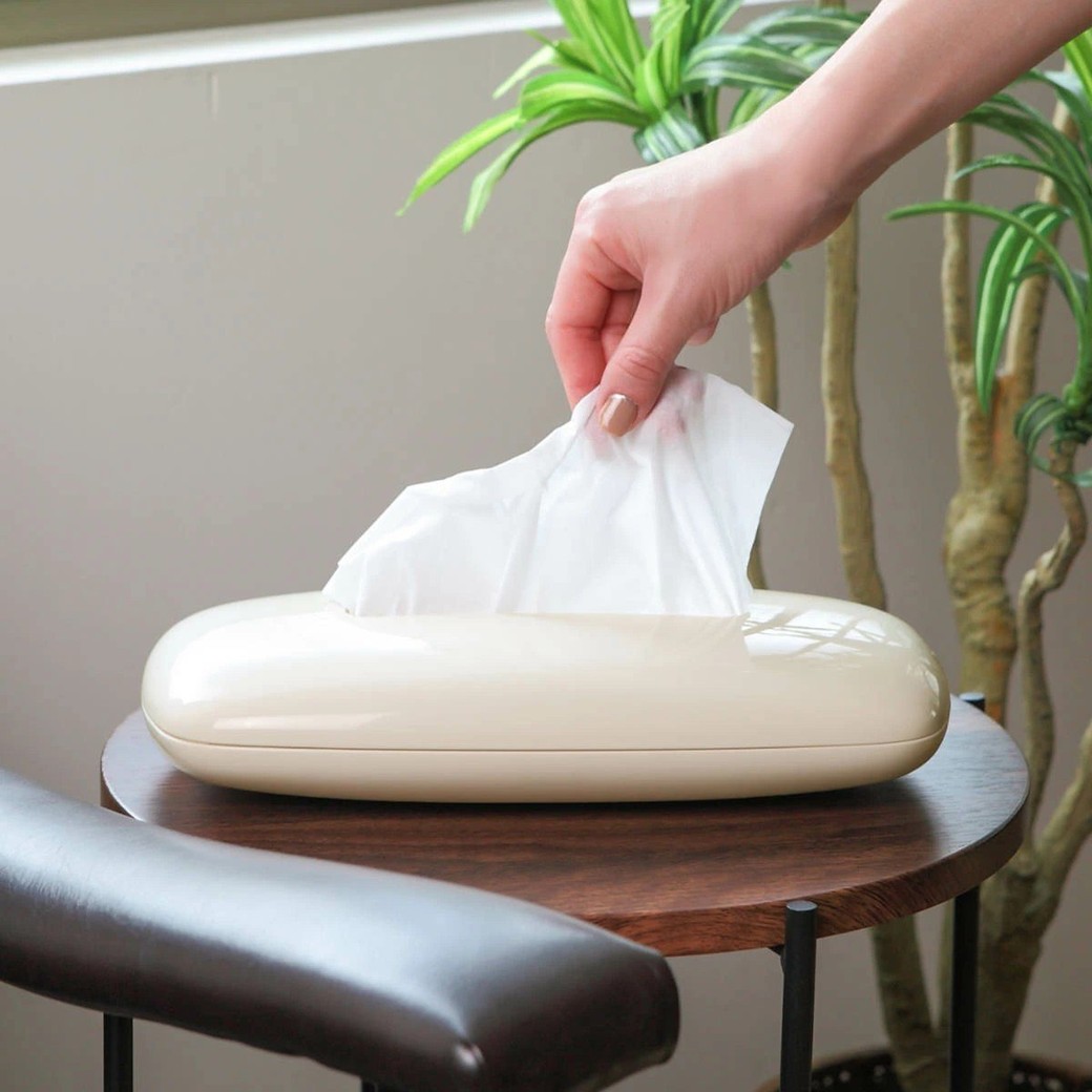 ころんと丸みを帯びたフォルムと、艶やかな光沢感が魅力のティッシュケース。生活感が出やすいティッシュを、インテリアの一部として美しく引き立ててくれます。プラスチック素材なので水や汚れもサッと拭き取れ、キッチンや洗面所などの水回りにもぴったり!薄型のコンパクト設計で、ベッドサイドやデスク周りなど省スペースにも◎。詰め替えも簡単で、毎日の暮らしに心地よさと上品さをプラスしてくれるアイテムですよ。