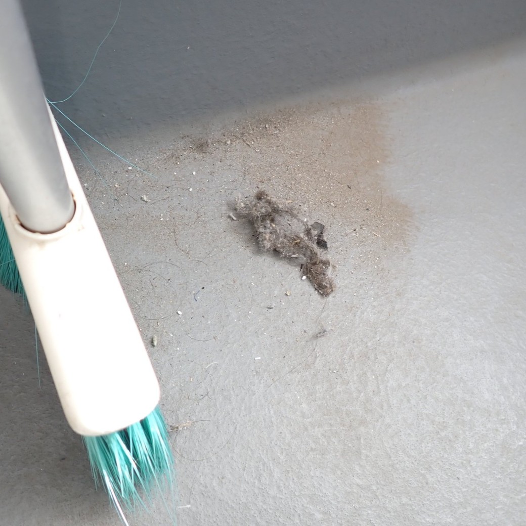 この夏ずっとスルーしてきたベランダ。いざ見ると砂、髪の毛、ホコリ……見なかったことにするのもそろそろ限界。今回はサクッと一掃します!