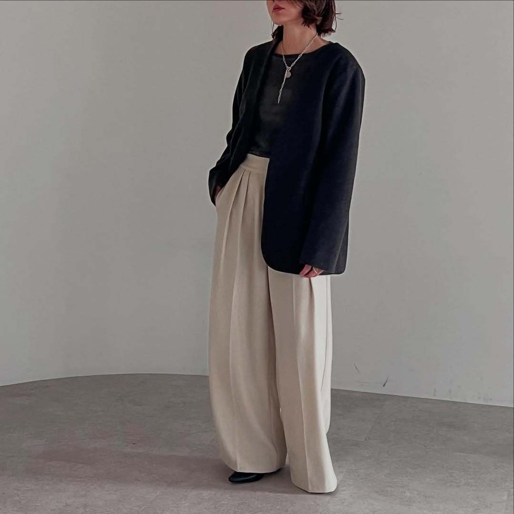 ジャケットとワイドパンツの組み合わせは鉄板で、上下のバランスがとりやすくスタイルアップ効果も抜群。