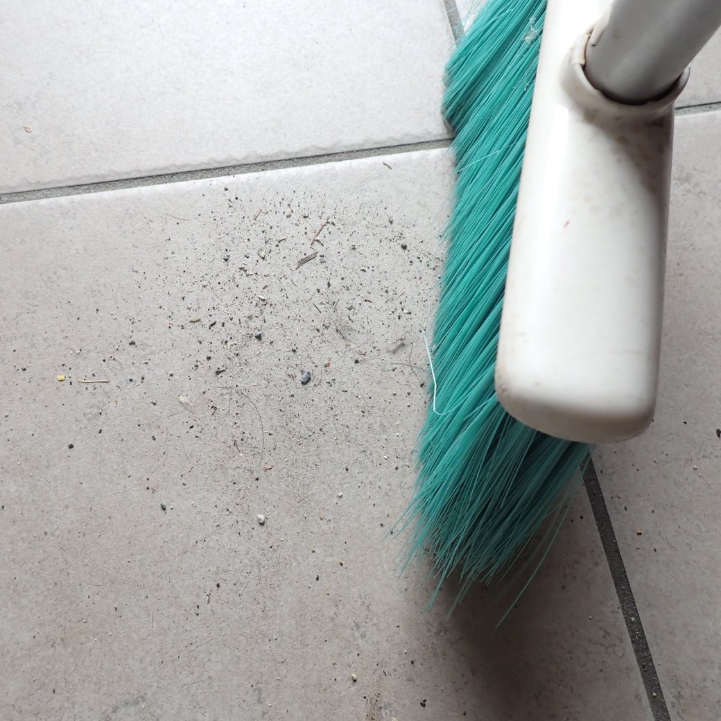 いきなり水を使用するのはナンセンス。まずはほうきで砂やホコリを徹底的に取り除きます。理由は以前の記事でご紹介したベランダ掃除と一緒で、砂やホコリを取る前に水を使用してしまうと、逆に汚れが落としにくくなる可能性があります。