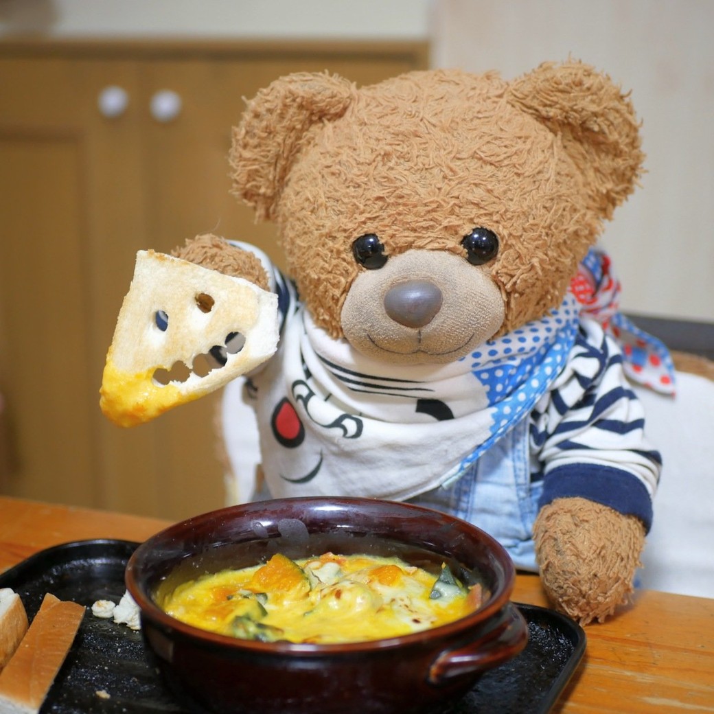 かぼちゃのグラタンに食パンおばけをのせていただきます!