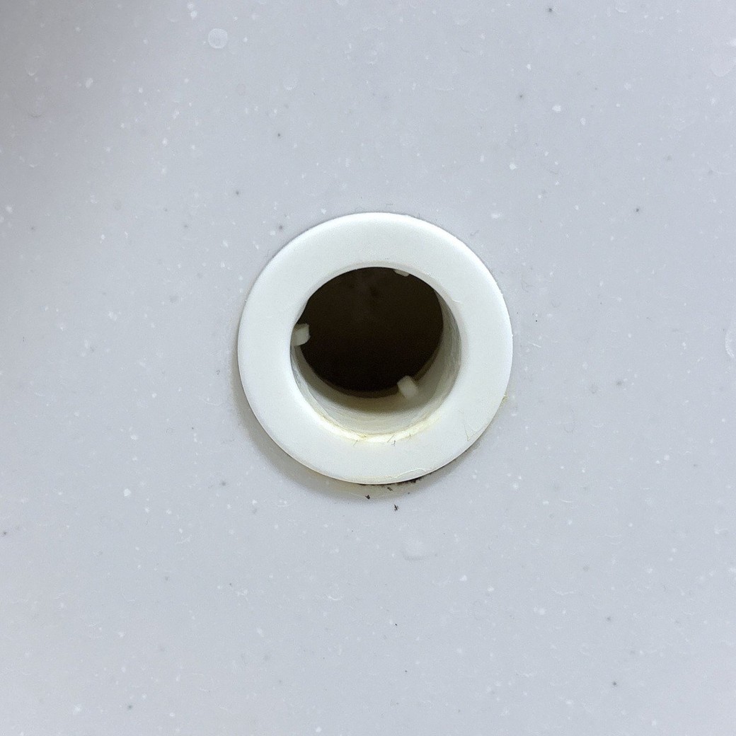 汚れだらけだったオーバーフローが、バスマジックリンとブラシ2本でピカピカになりました。中に溜まった汚れは見えませんが、しっかりお手入れすることでイヤな臭いの解消につながります。
