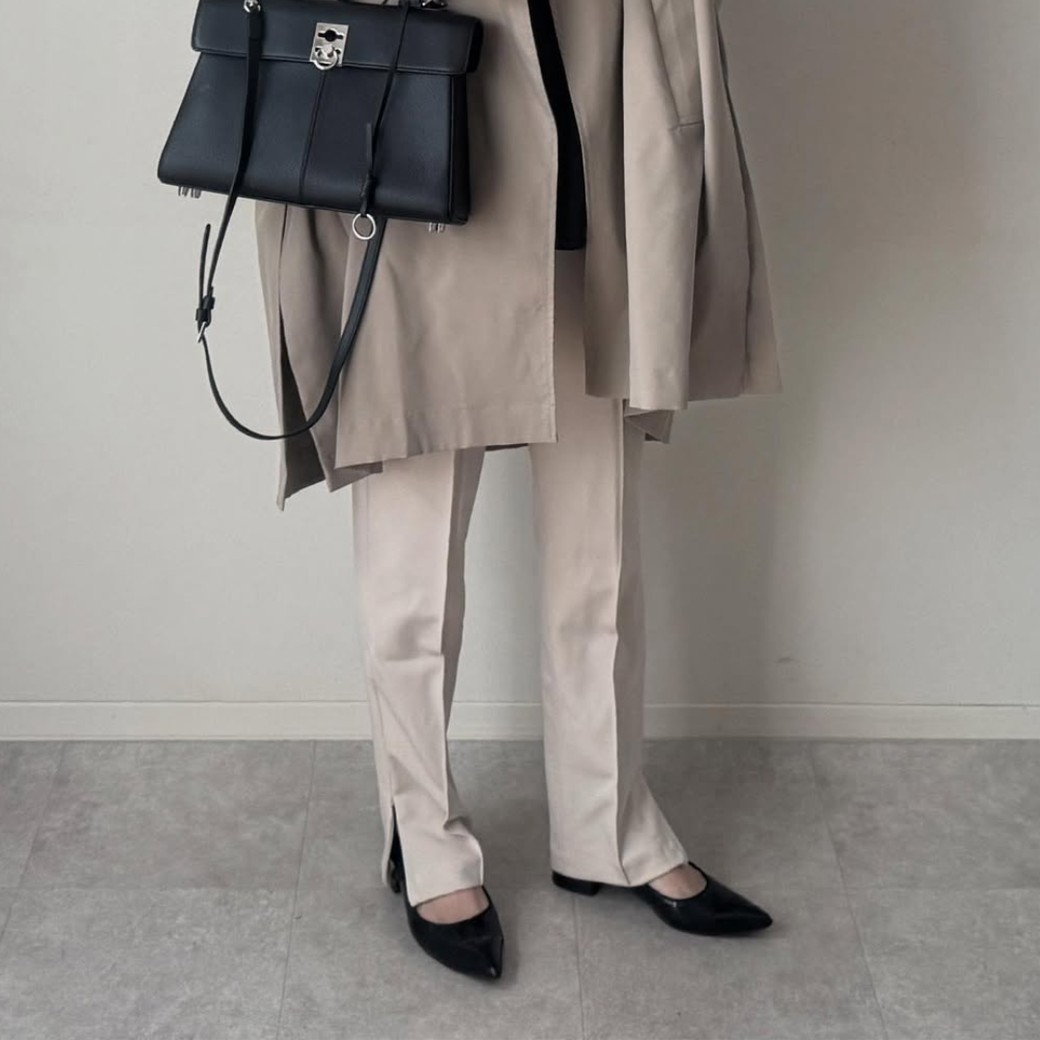 そんなときは、パンプスやバッグなどの小物などにブラックなどのコーデを引き締める色を使うと、一気に秋冬感がでてGOOD。