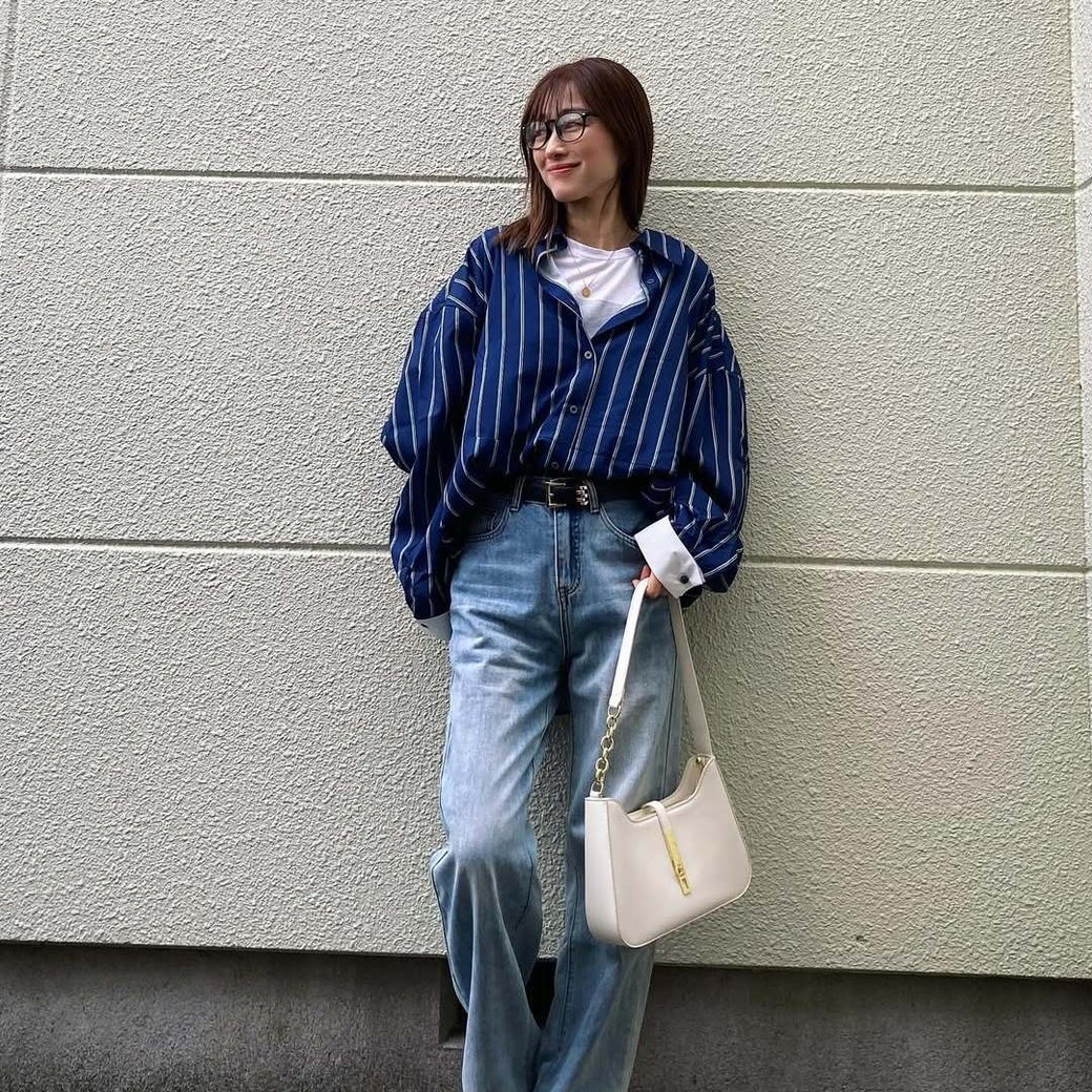 ストライプオーバーシャツで知的カジュアルに格上げ