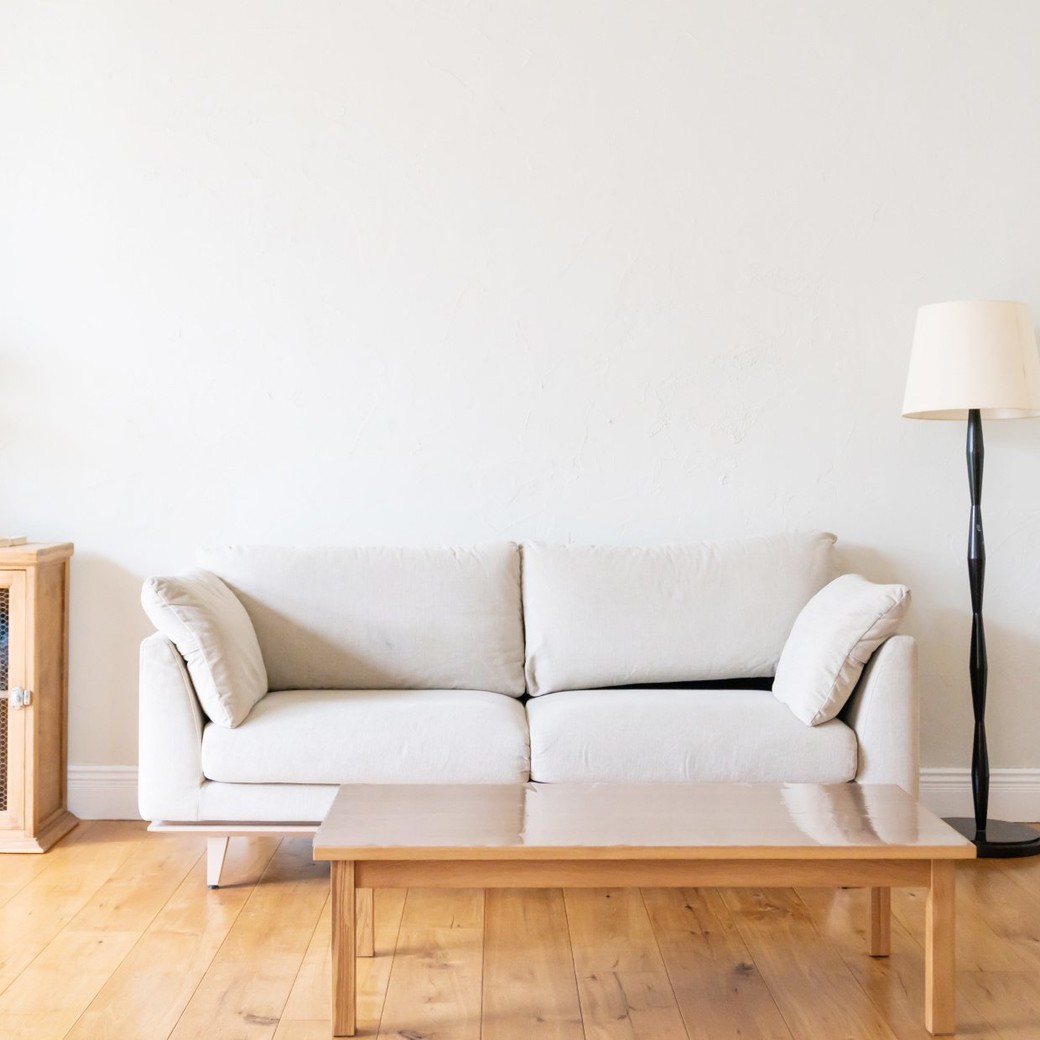 ソファはくつろぐためのものだからこそ、余計なものを置くのは避けましょう。クッションがあれば、ポンポンと叩いて形を整えてソファに並べます。ブランケットをたたみ、ソファまわりも整えておきましょう。