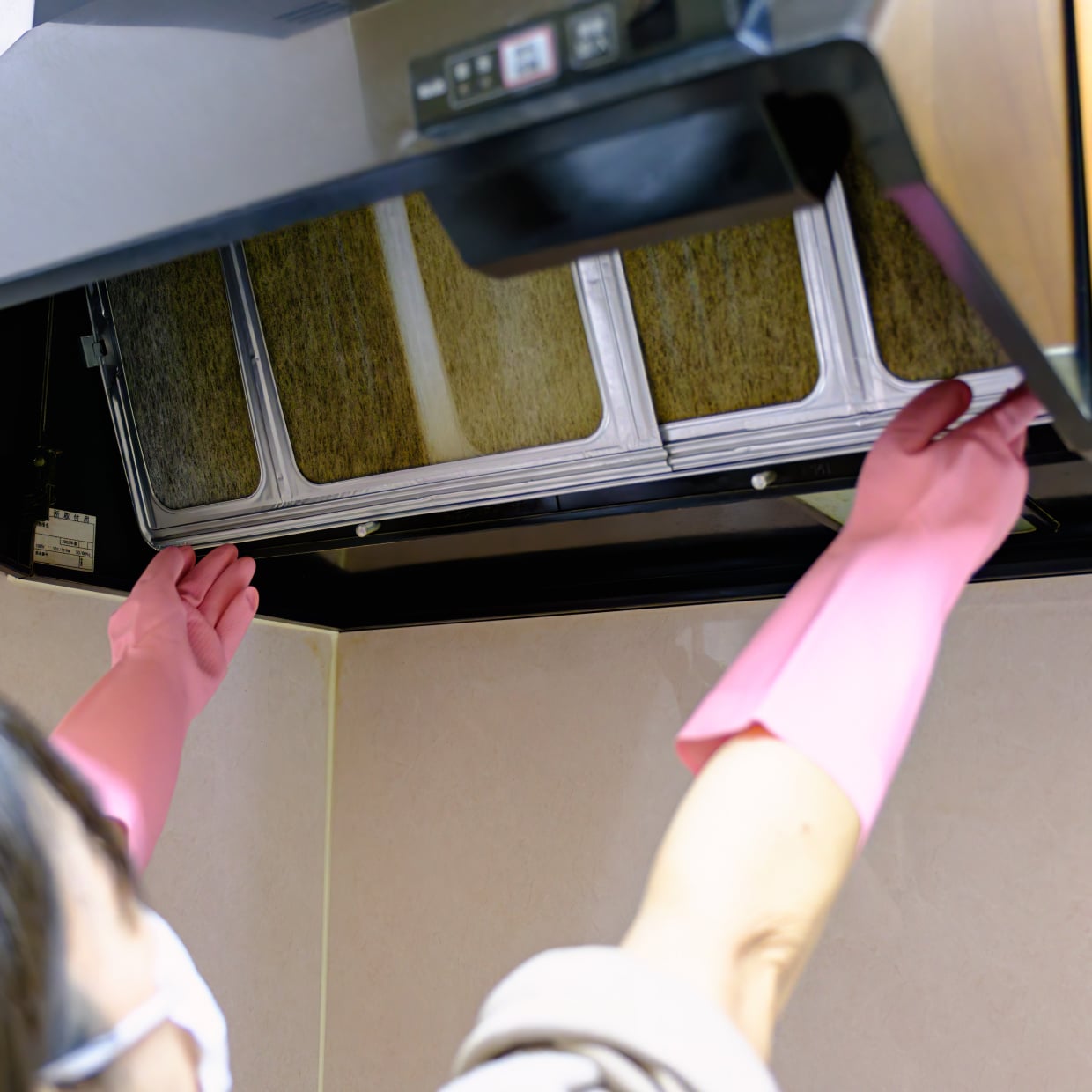 換気扇のフード掃除にも、キッチンマジックリン ハンディスプレーが役に立ちます。しかし、目線よりも上にある場所に使う場合は注意が必要。スプレーしたときに洗剤の飛沫が目に入りやすいため、危険をともないます。