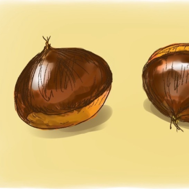 3つ並んだ栗を見て、「ママとパパとゆあだね」って優亜が言ったのが可愛くて、もったいなくて、そのままにしてるんだけど。