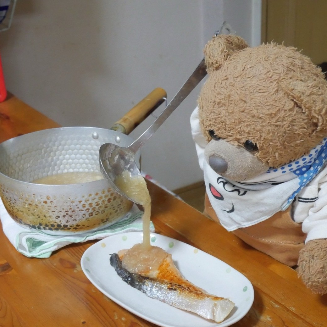 3. 甘塩鮭を焼いて2の生姜みぞれあんをかけたら完成。