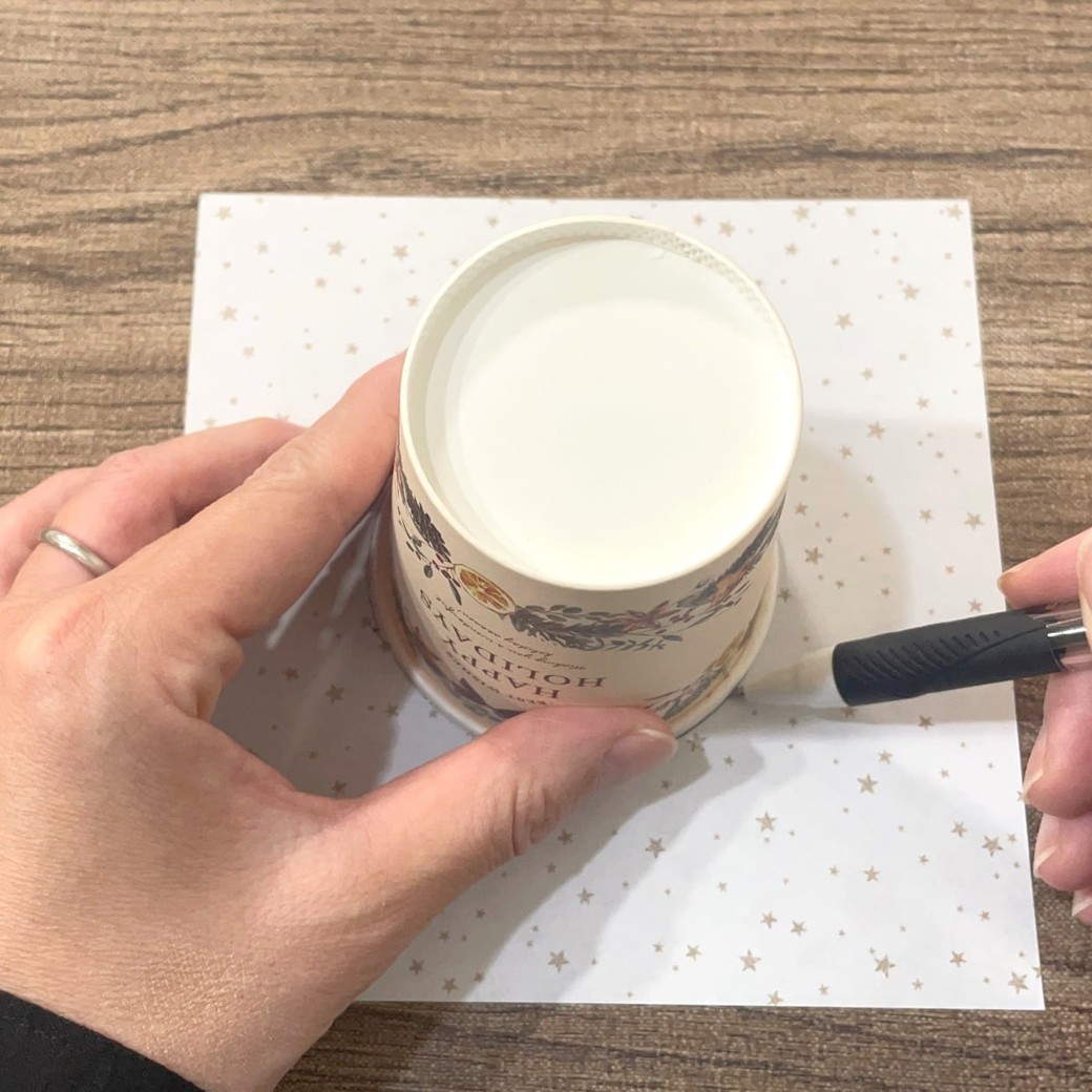 1.折り紙の上に紙コップを逆さまに置き、口の外周をぐるりとなぞります。