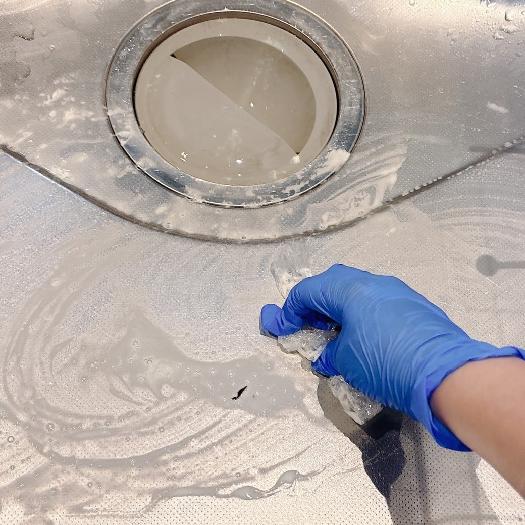キッチンシンク全体に、ジフを適量出しましょう。