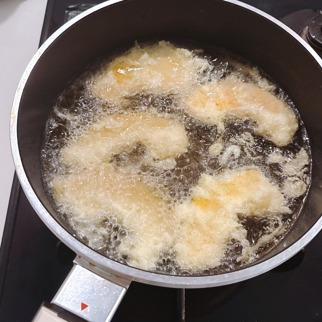 作り方【2】食材に衣をつけて、170℃に熱した油で揚げます
