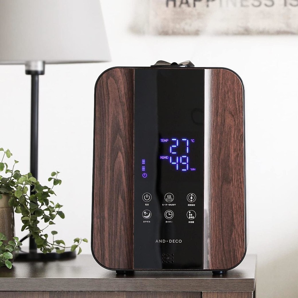 木目調のダークウッドカラーは、いかにも「家電」といったプラスチック感がなく、リビングの家具とも自然に馴染みます。コンパクトで場所を取らず、インテリアの一部として部屋の雰囲気を引き締めてくれるのも嬉しいポイントです。