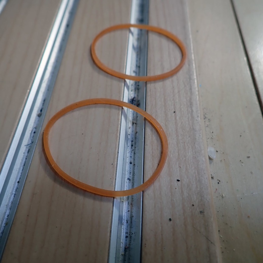 今回のメインの動作は、レールの上に輪ゴムを乗せて、引き戸を開け閉めするだけ。たったこれだけで本当に「掃除」と言っていいものか、少々疑問が残るところではありますが……。