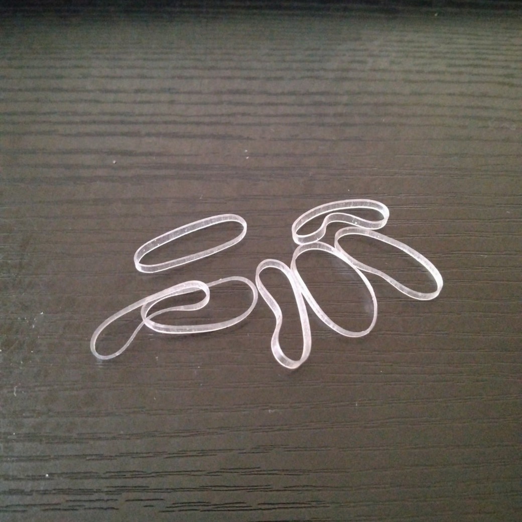 - 透明ヘアゴム(目立たせたくない場合は透明、分かりやすくする場合は色つきでも可)を用意します。