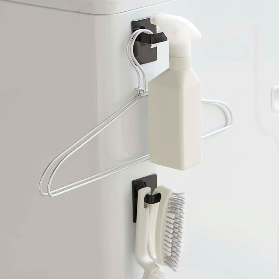 「横向き」にして洗濯機の側面に貼れば、洗剤スプレーや襟袖汚れ用のスプレーを引っ掛けるのにぴったりのハンガーに変身。 床や防水パンのふちに物を置かなくて済むので、ホコリが溜まりにくくなります。