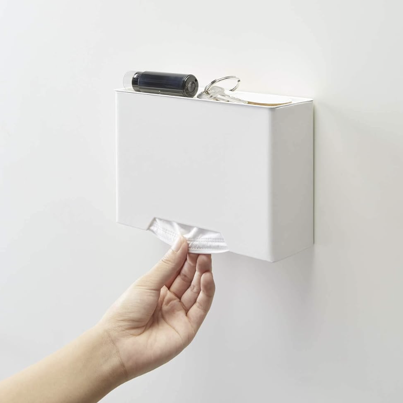 マスクのパッケージをそのまま置いておくと、どうしても生活感が出てしまいがち。でも、このホルダーは中身が見えないシンプルでスタイリッシュなデザイン(今回は清潔感のあるホワイトをご紹介)。