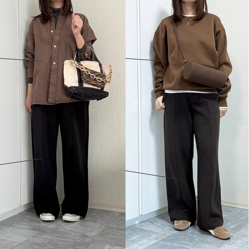 UNIQLO同士の組み合わせとは思えない、上品で高見えするブラウンコーデです。