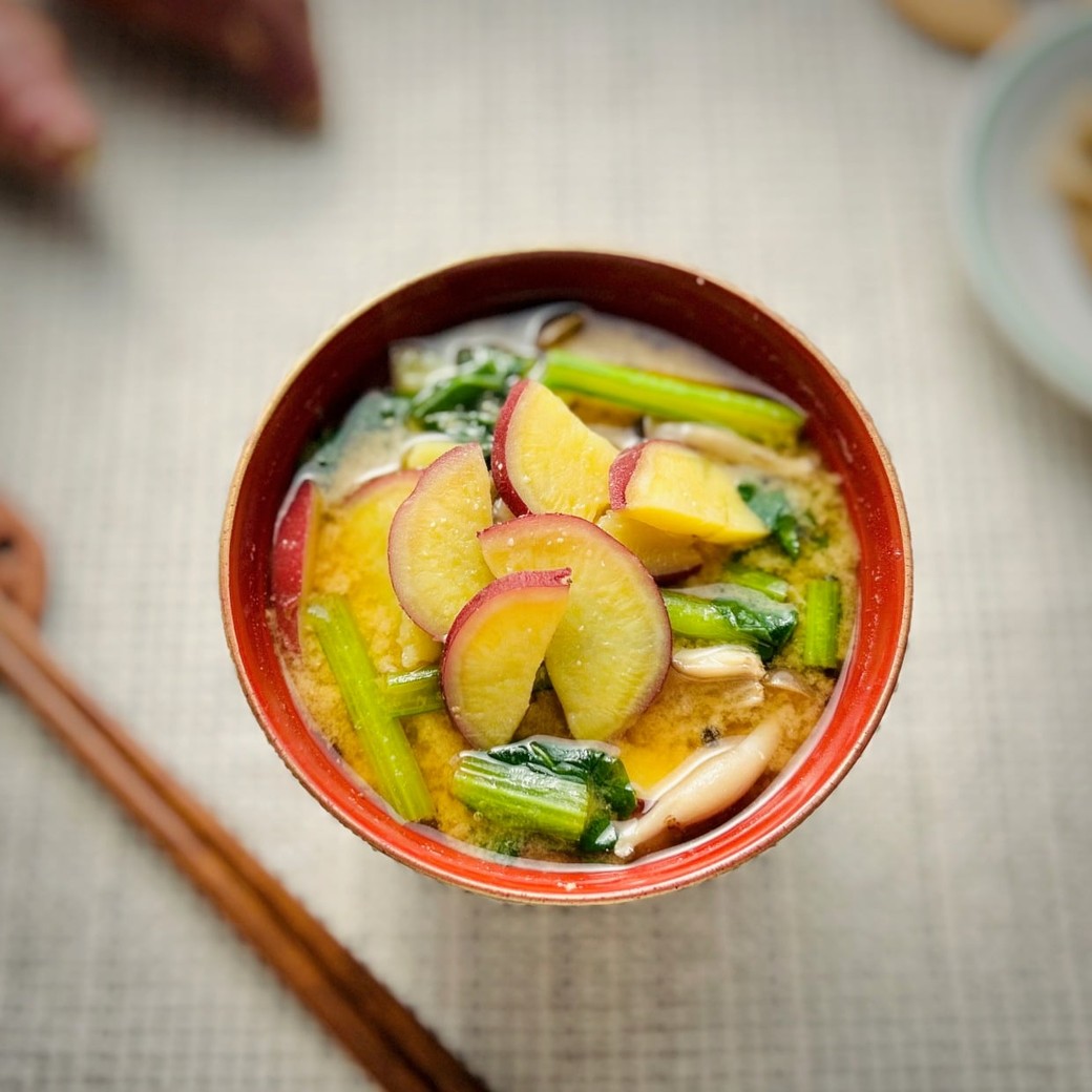 サツマイモの自然な甘みが主役の、食べたあとまで続く、やさしい満足感のみそ汁。日々の食卓に、無理なく取り入れてみてください。