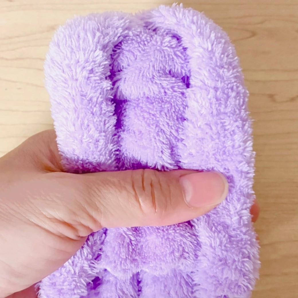 1.ミニタオルの裏面を上にして置きます。
