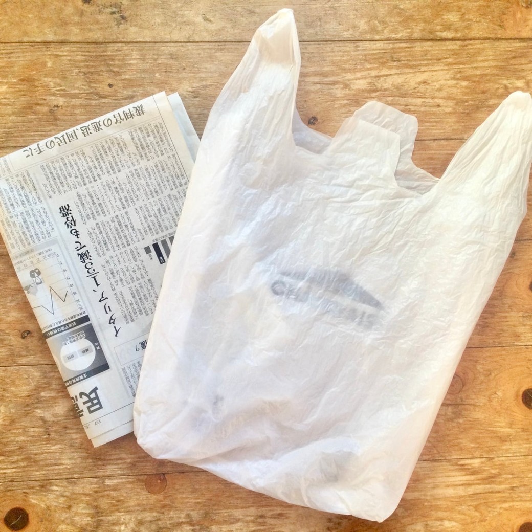 まず、四つ折りにした新聞紙を袋の底に敷き、土台を作ります。