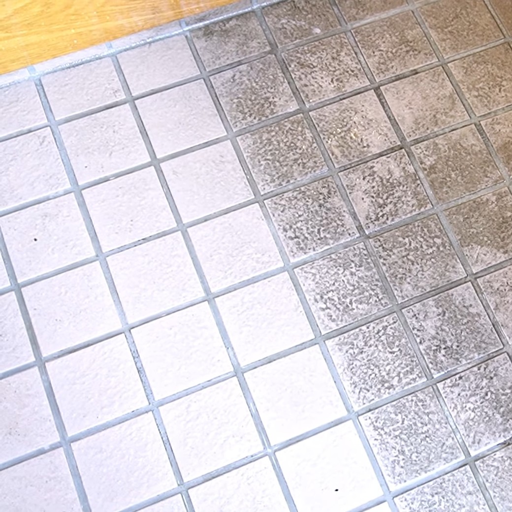 2. メラミンスポンジでタイルを掃除します。力は軽く、こする程度で十分です。タイル全体を、軽くこするように掃除していきます。