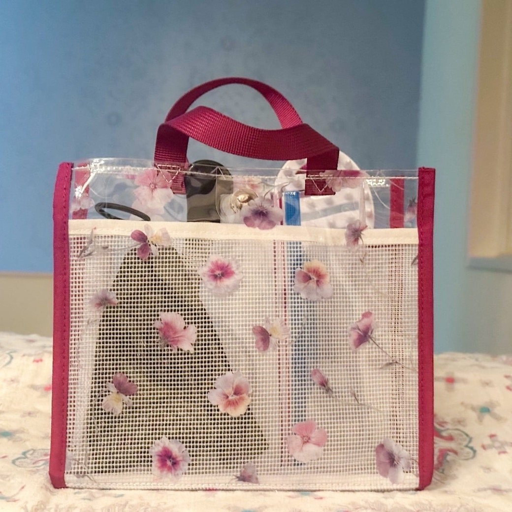 市販の「スパバッグ」もいいですね。引っかけておけるので場所を取りにくいのもうれしい。これはデコホームで購入したものです。