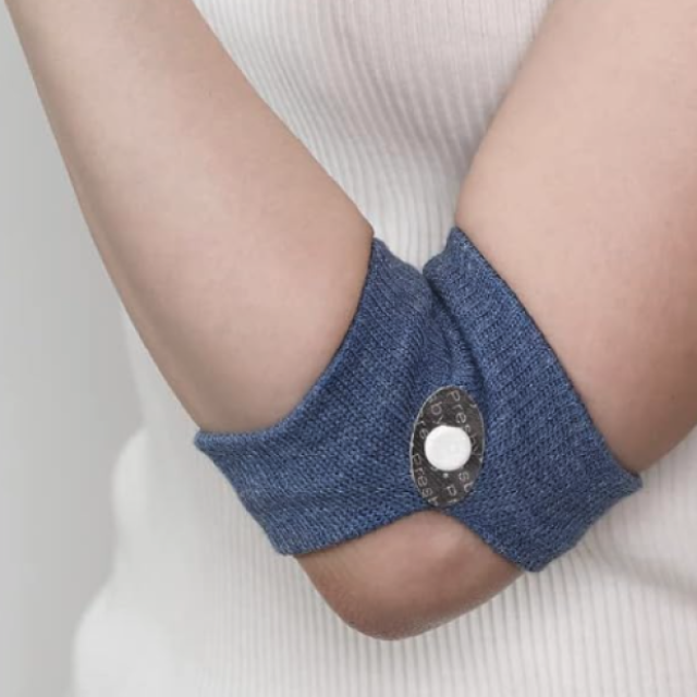 スッキリバンドは、肘の近くにある「曲池(きょくち)」という、花粉や鼻炎の緩和に良いとされるツボにピタッと合わせて腕にはめるだけ。あとはそのまま放置で解決します!