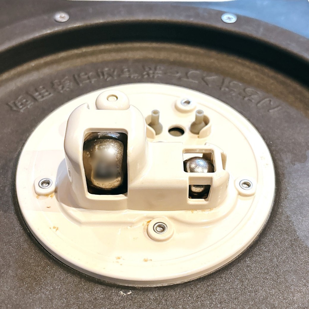 調圧ボールは、蒸気の通り道に関わる大切な部分で、圧力を調整するための部品であり、過剰な蒸気を逃がす役割があります。ここに汚れが詰まると、圧力がかかりづらくなり、ごはんがうまく炊けない、保温ができないなどのトラブルにつながります。