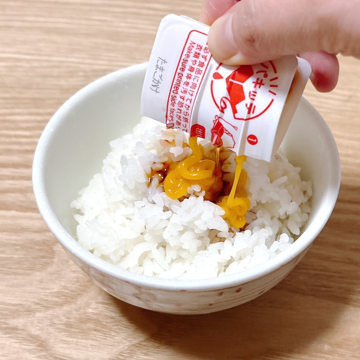 醤油たれと卵ソースがひとつになっています。なんか既視感あるな……と思ったら、パンに塗るジャムとバター、ケチャップとマスタードなどでおなじみの「パキッテ」の容器でした。