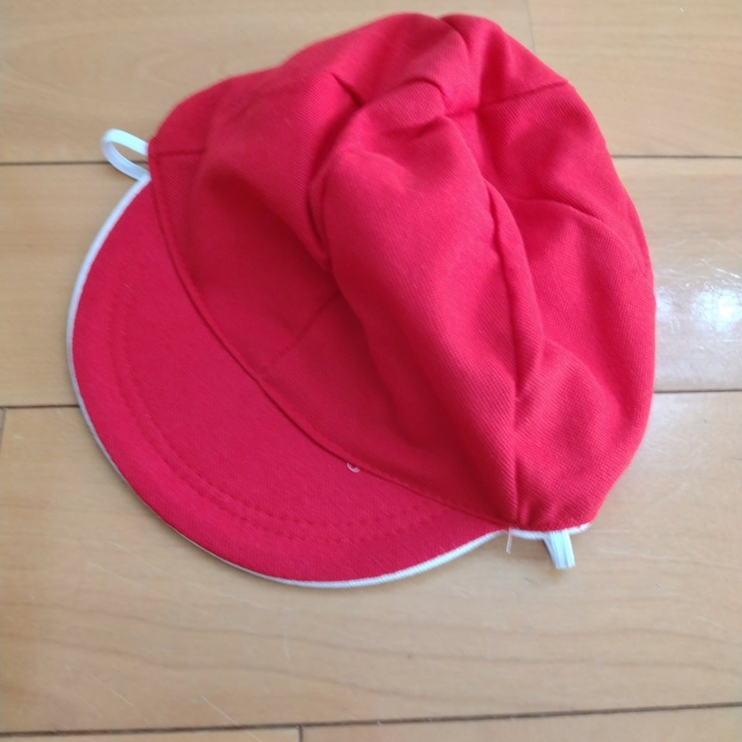 1. 伸びた帽子のゴムを、ハサミで半分に切ります。