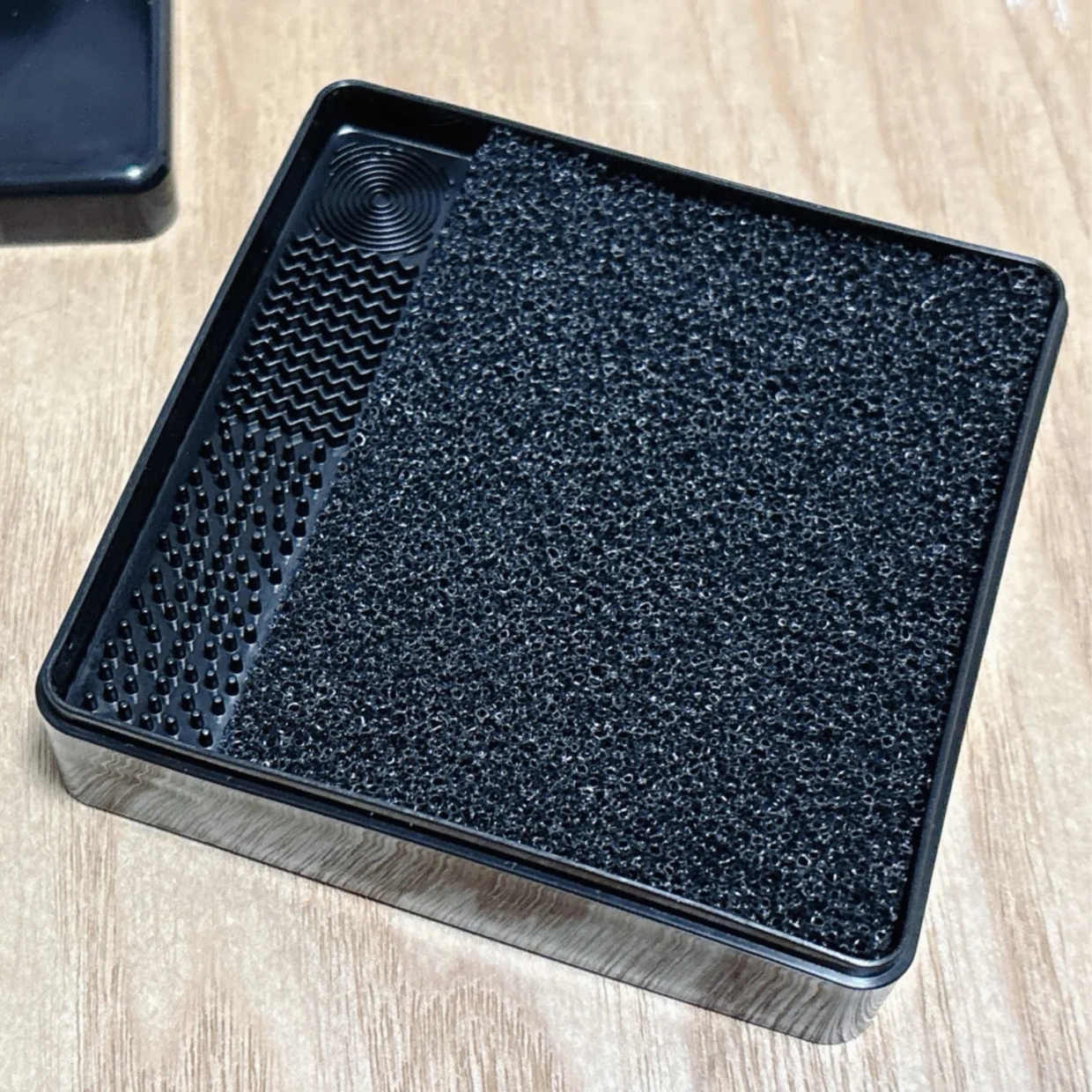 本体の凹凸は、小さなブラシのお手入れ用です。こすると、細かい汚れをしっかりかき出せるんだとか。
