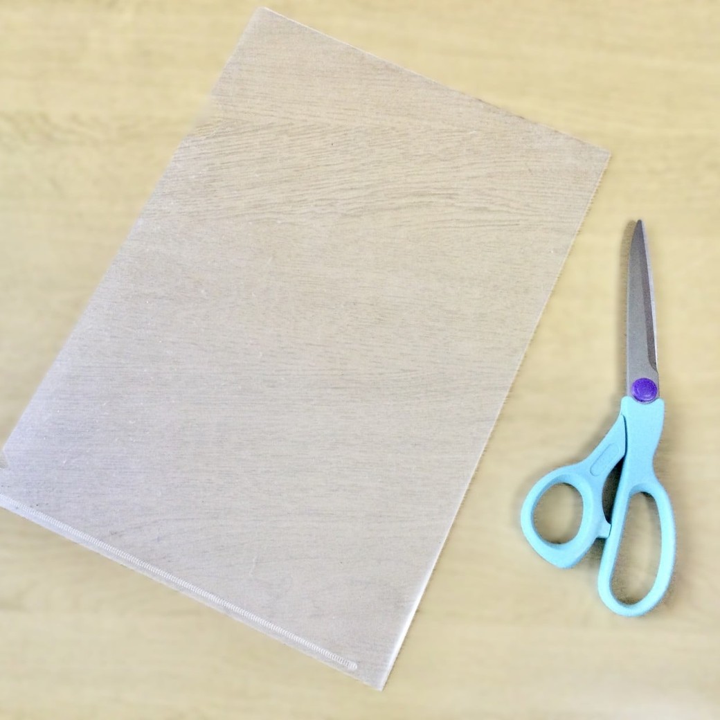 まず、クリアファイルの下部中央を半円状にカットし、ゴミ袋の取り出し口を作ります。
