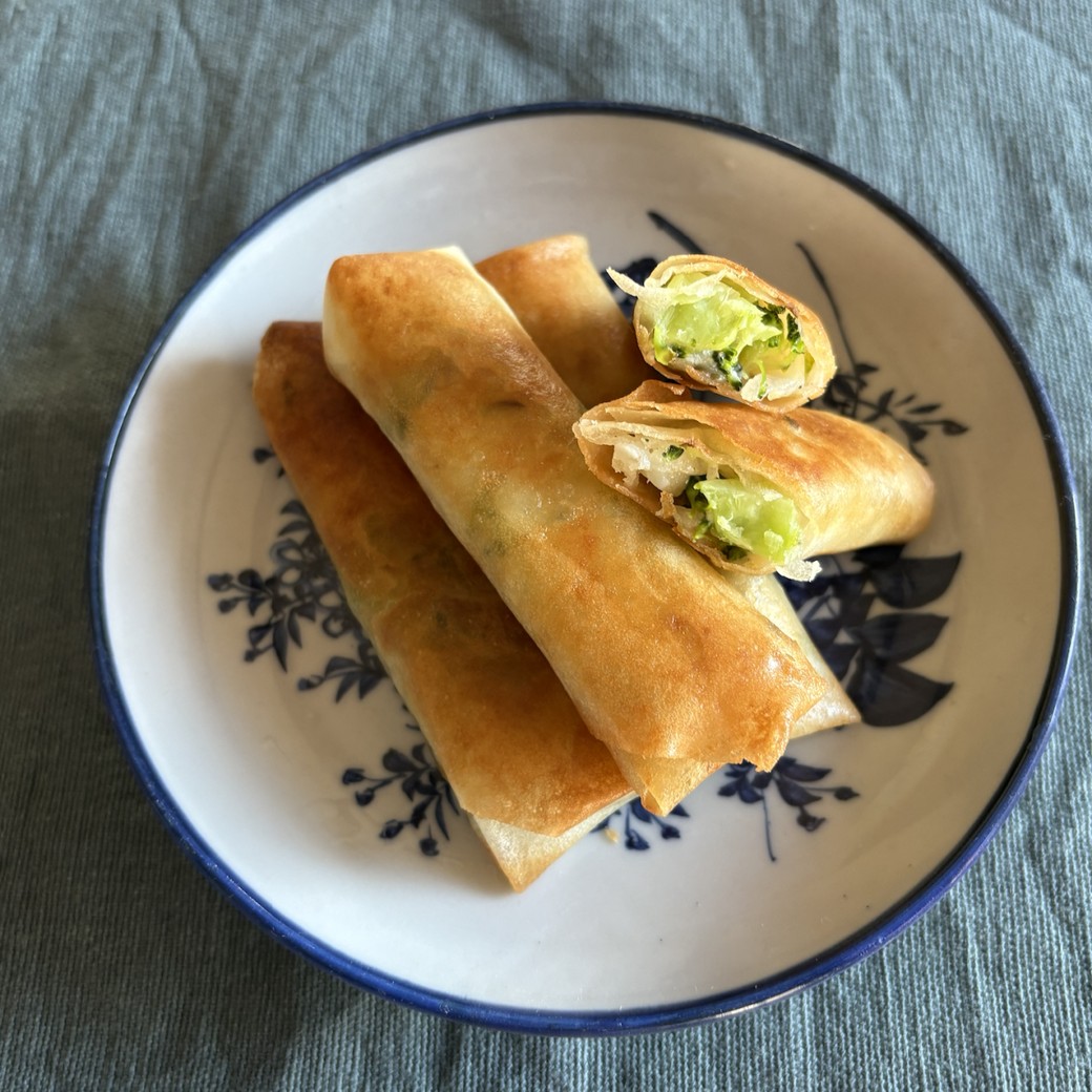 春巻きは、中に火が通ったか確認するのは面倒なのと、心配のあまりついつい火を通しすぎて焦げてしまうこともあります。その点、具材の野菜をみじん切りにすれば、すぐに火が通ります。また、少ない油で十分なので片付けも楽です。
