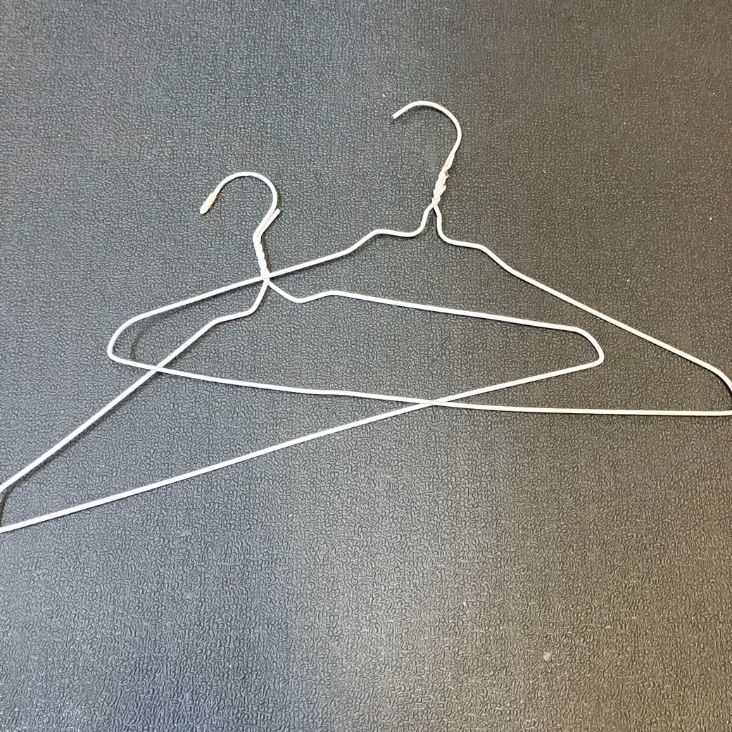 左右に曲げた針金ハンガー