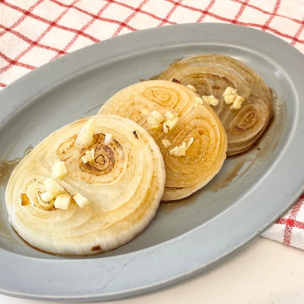 「新玉ねぎのガーリックしょうゆステーキ」の作り方(調理時間:10分)
