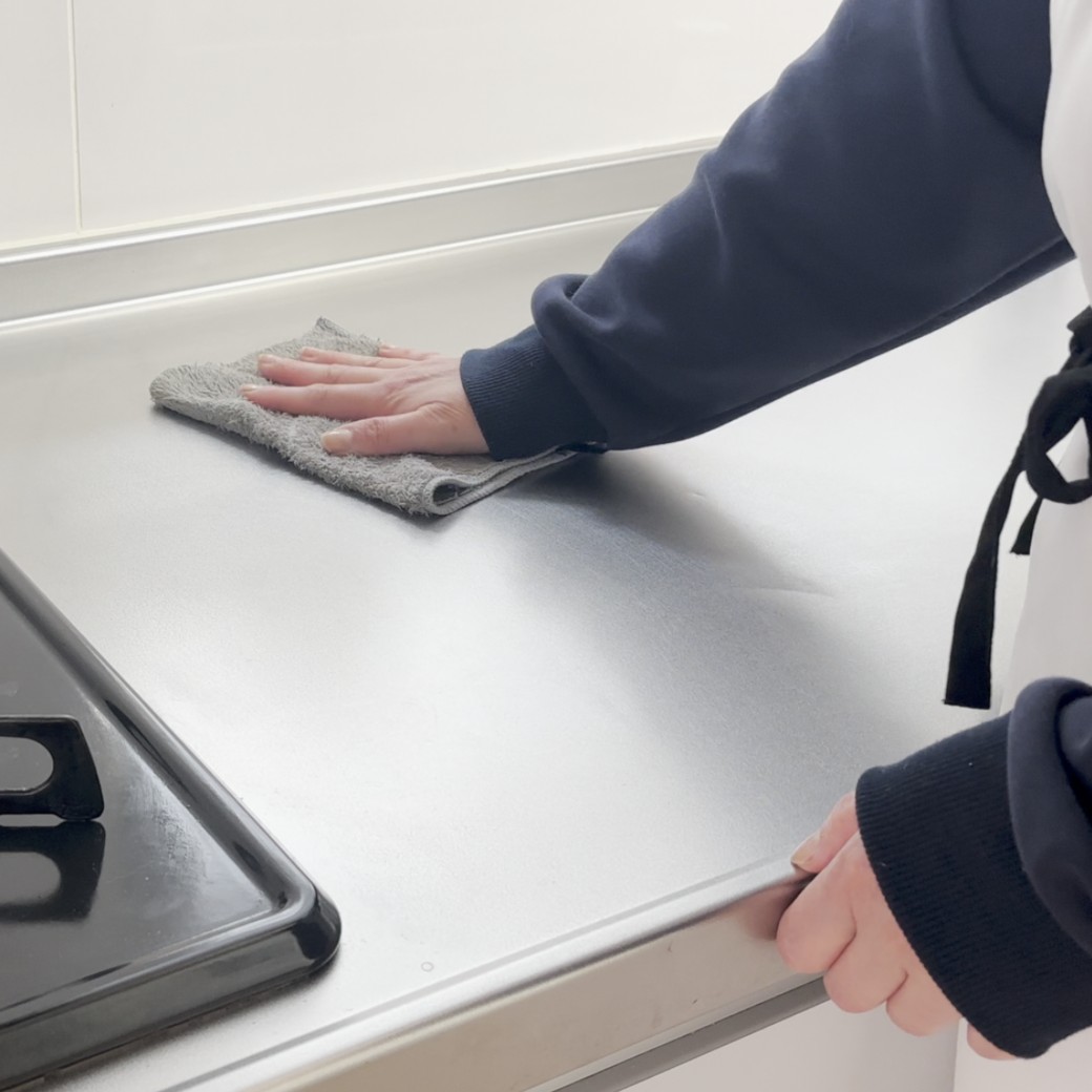 手順⒉ 調理台やテーブルをやさしく拭く