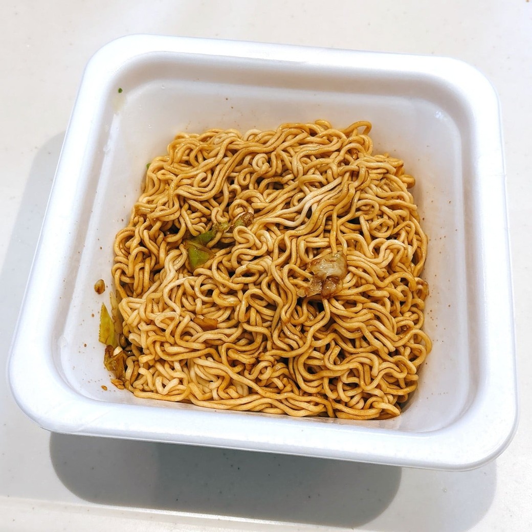 ひと口食べてみると、ソースのしっかりしたコクはそのままに、たまごのほんのり甘い風味が加わって、角がとれたようなやさしい味わいになっていました。海苔の香りもふわっと広がり、いつもの焼きそばが少し和風寄りに。ほんのり甘さが加わることで、ややスパイシーな味のカップ焼きそばも食べやすくなりますよ。