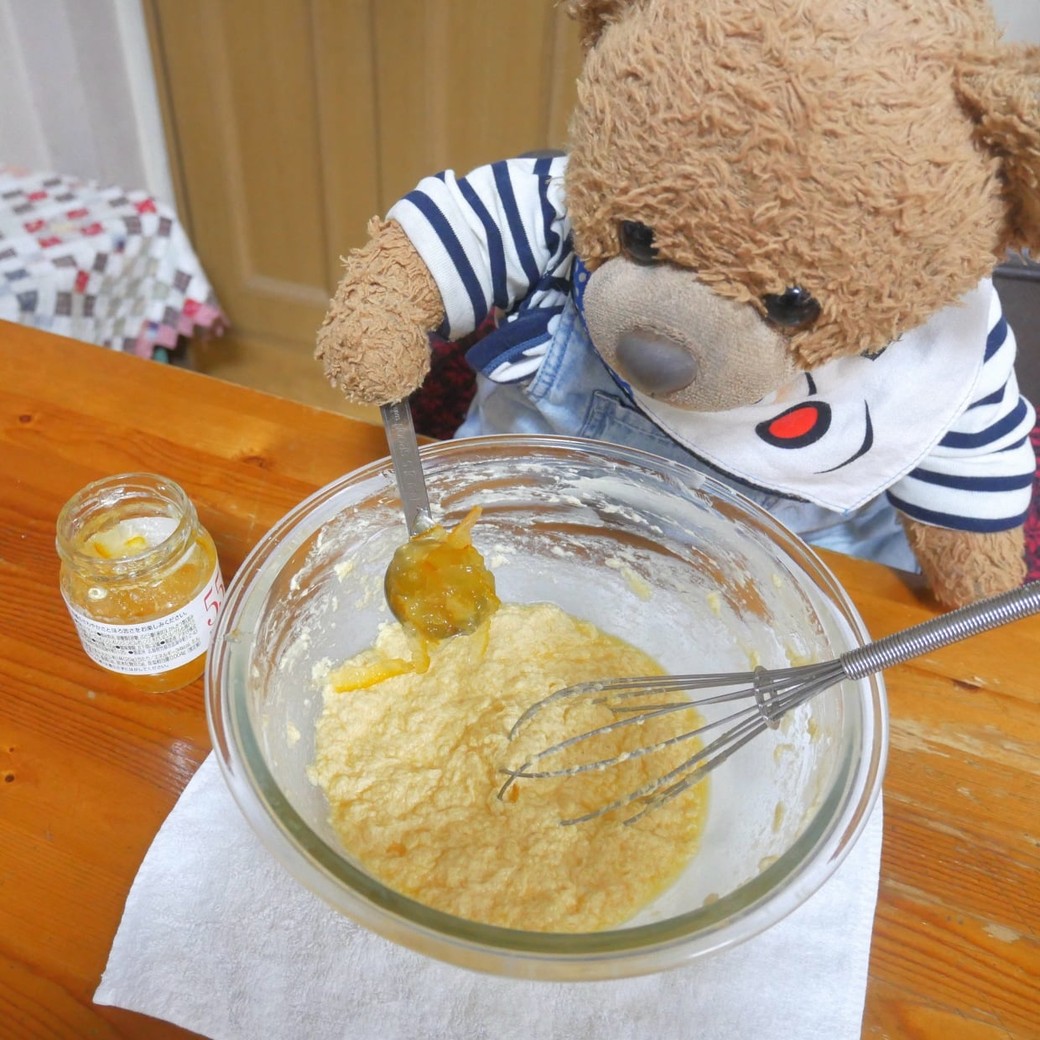 オレンジの爽やかな香りがふわっと広がるカップケーキ! マーマレードが真ん中からとろりと出てきてすごく美味しい。焼きたては外側のさっくり食感が楽しめ、冷めると全体にしっとり食感だよ。マーマレードが余っている時は美味しく消費できちゃうよ!