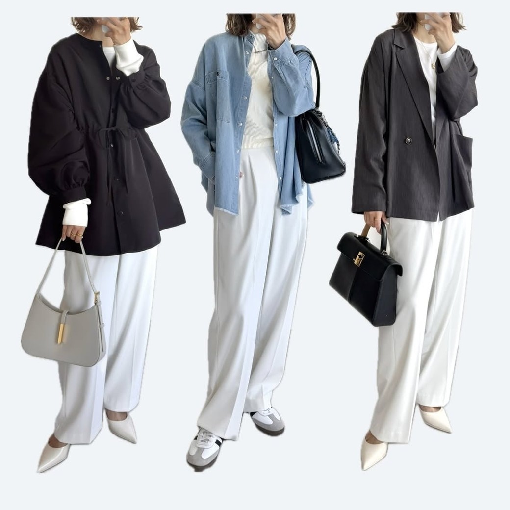いかがでしたか? 定番のユニクロ「タックワイドパンツ」も、合わせ方を少し工夫するだけでぐっと今っぽい印象に仕上がります。ぜひ、この春のコーディネートの参考にしてみてください。